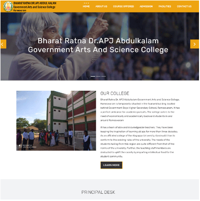 Bharat Ratna Dr. APJ Abdulkalam Govt Arts and Science College, Rameswaram is temporarily situated in the Tsunami building located behind Government Boys Higher Secondary School, Rameswaram. -