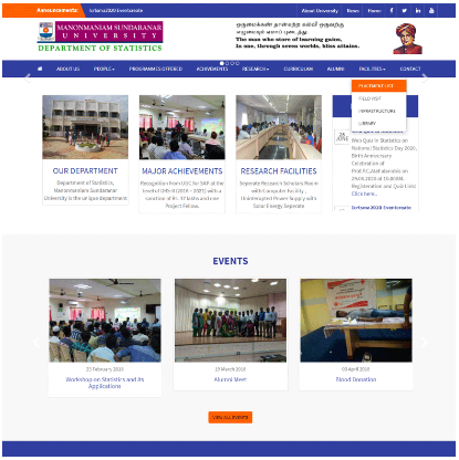Department of Statistics, one among the 27 academic departments in the University. It was established in the year 1990 (since the inception) of the University. It is unique department in the subject of Statistics located in the southern part of the State of Tamil Nadu. -